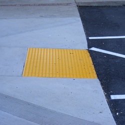 The use of ADA dome pads is one such legal requirement that has caused some tension among those in small businesses and even from those supported by ADA laws. The ADA Truncated Dome Pads or simply ADA Pads are required to be installed onto ramps or sidewalk areas where the pedestrian pathway and parking lot meet. According to the United States Access Board, ADA compliant pads are easily detectable by your feet when you are walking over them. The purpose is to signal in a tactile way to a blind or visually impaired person, “Hey you are about to walk into a space where there may be moving vehicles.”