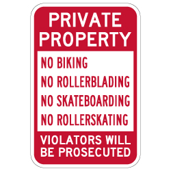 No Biking Rollerblading Skateboarding Rollerskating Sign - 12x18